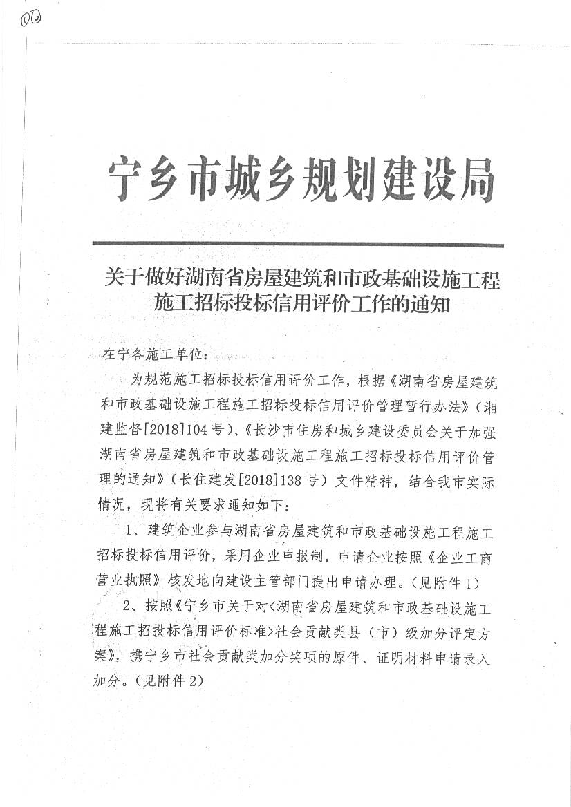 关于做好湖南省房屋建筑和市政基础设施工程施工招标投标信用评价工作的通知