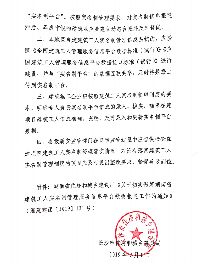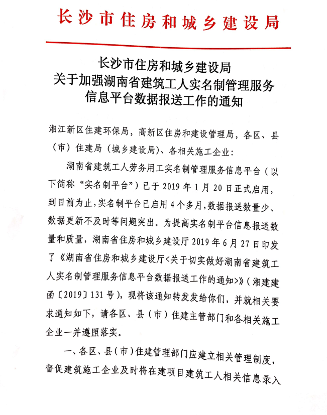 关于加强湖南省建筑工人实名制管理服务信息平台数据报送工作的通知